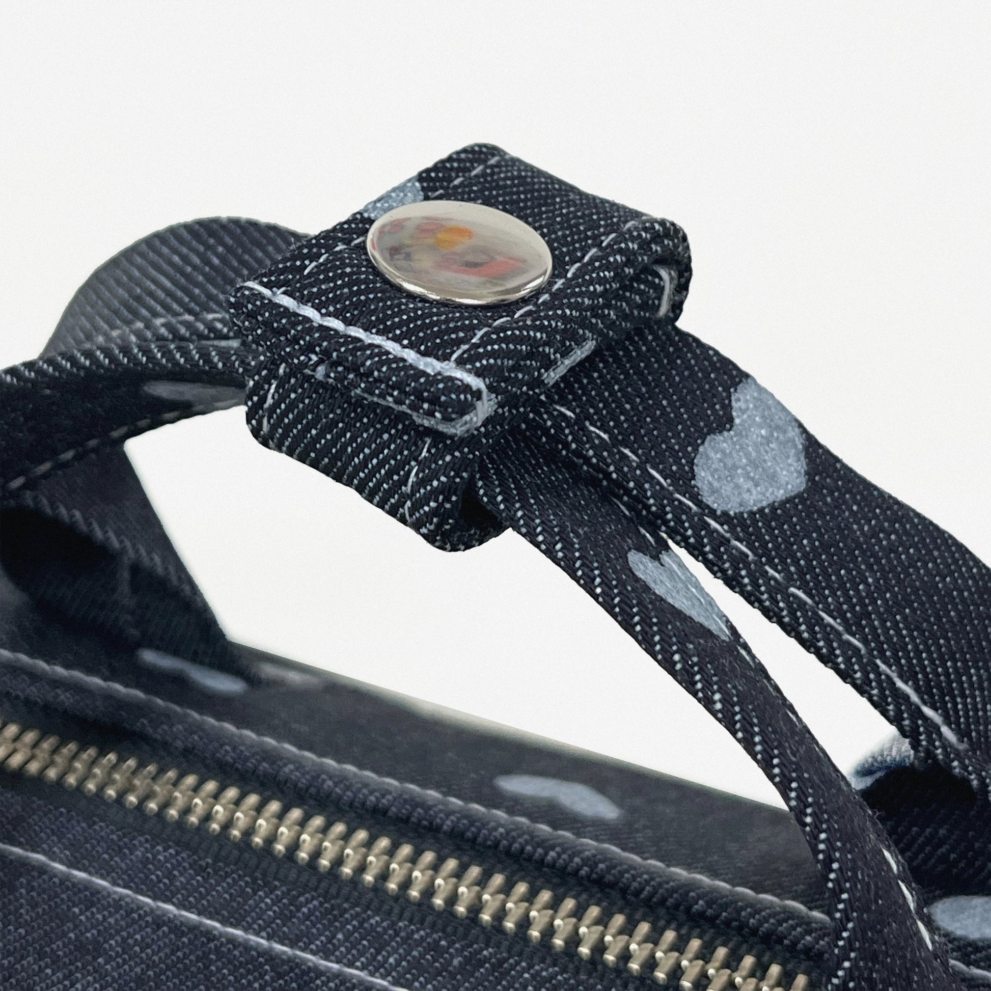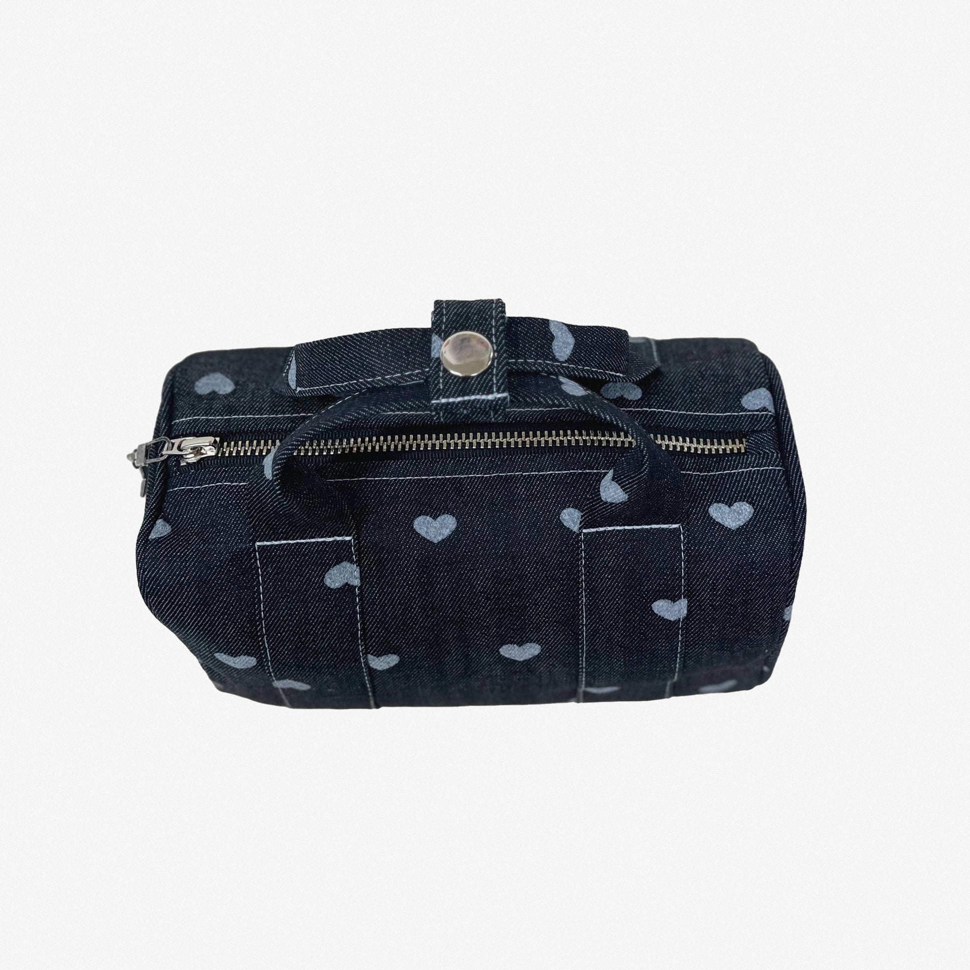 The "CuTe But pSycho" Mini Duffle Bag is the perfect choice. Made of denim and featuring a heart shape print, this limited edition bag is both stylish and practical. With a pocket inside and the option to use the shoulder strap or handle, it's the ideal accessory for any occasion xox