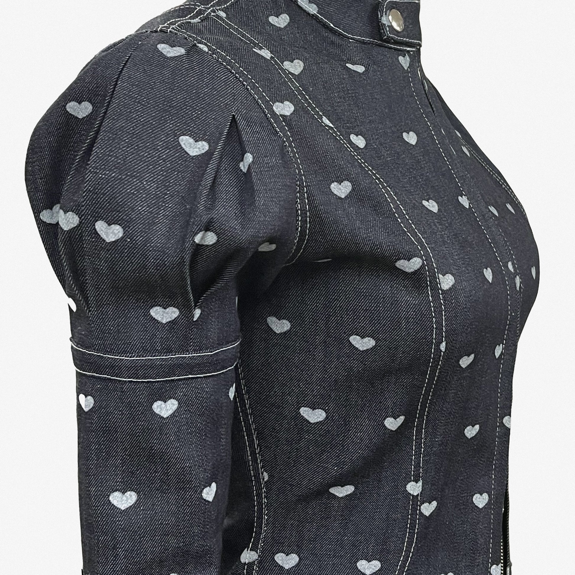 Expertly crafted in denim, the CuTe But pSycho MOTO JACKET boasts a playful heart print. With limited units available, this jacket is a must-have for those seeking a unique and stylish addition to YouR wardrobe.
