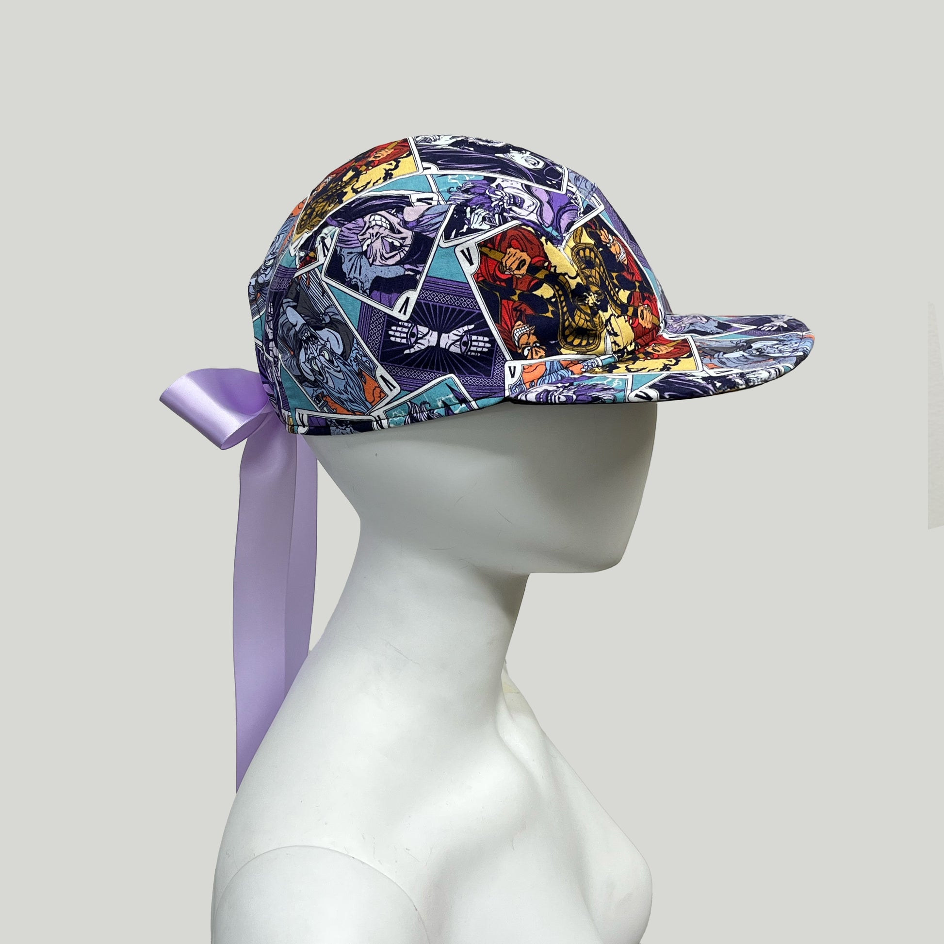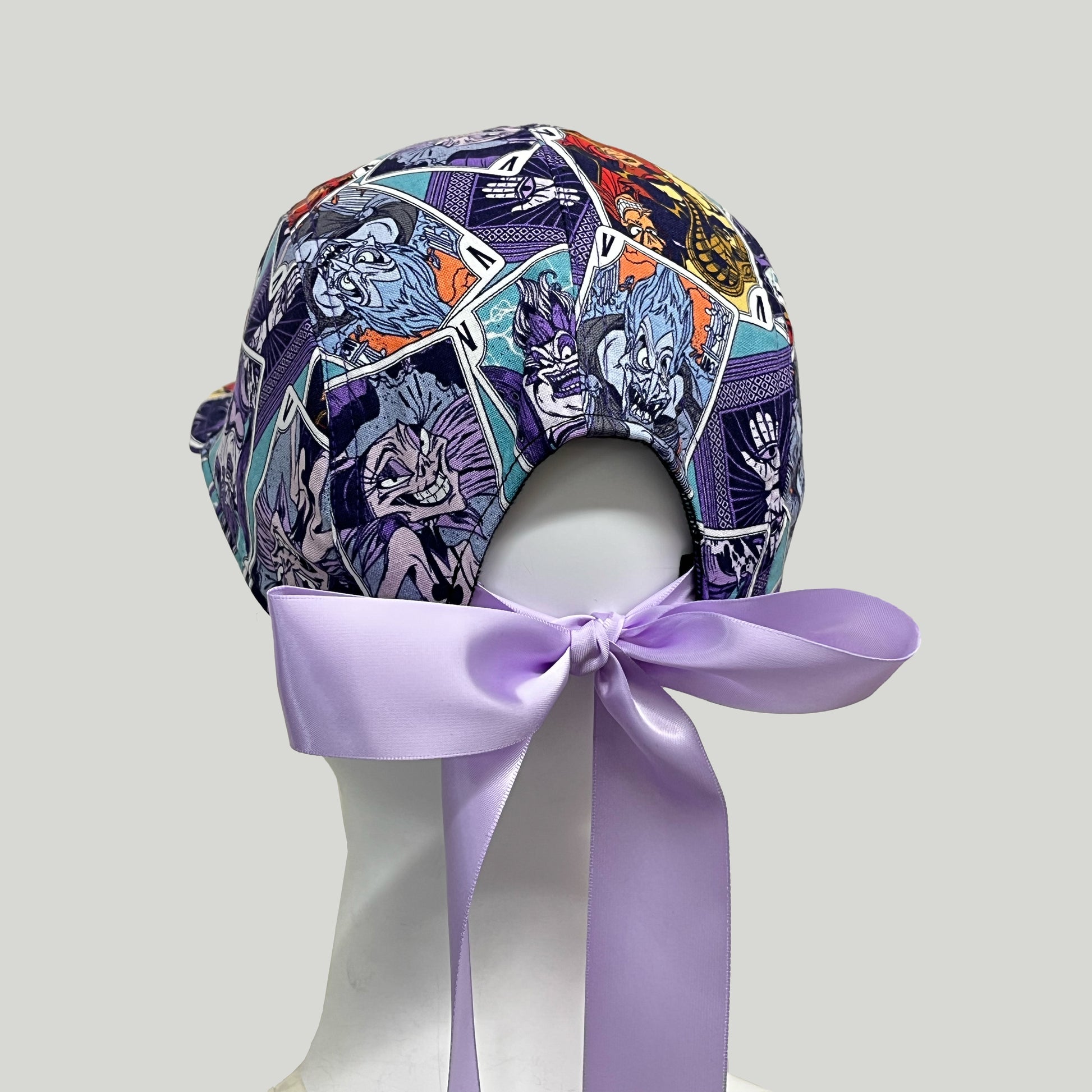 This snapback is made from leftover licensing fabric, fully fused to give it more structure and a beautiful satin tie for an a adjustable back closure. It’s a fun and eco-friendly way to show off your dark side with style and personality on Disney Parks!