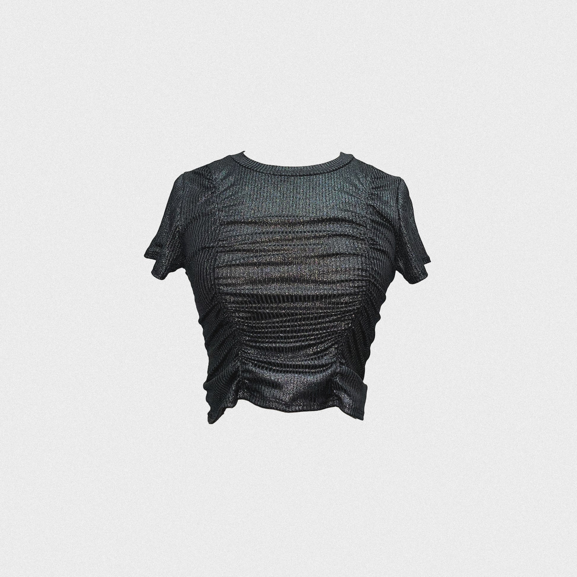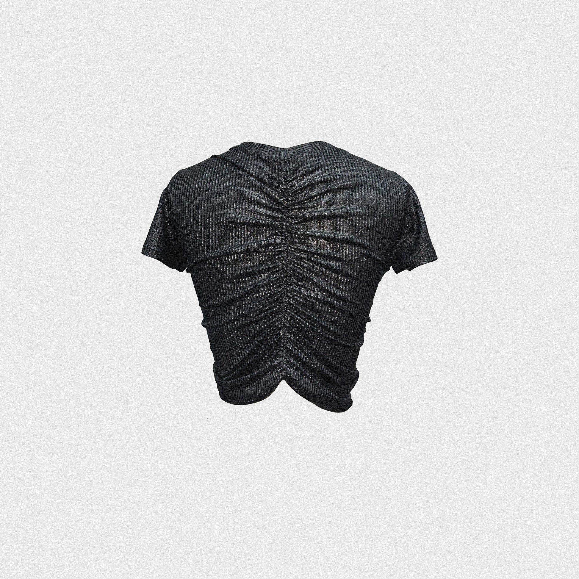 Available in silver, black, and white, this shirred top adds a touch of EVILNESS to any outfit. Perfect for making a statement without being too flashy. EVILate your wardrobe with this must-have piece xox