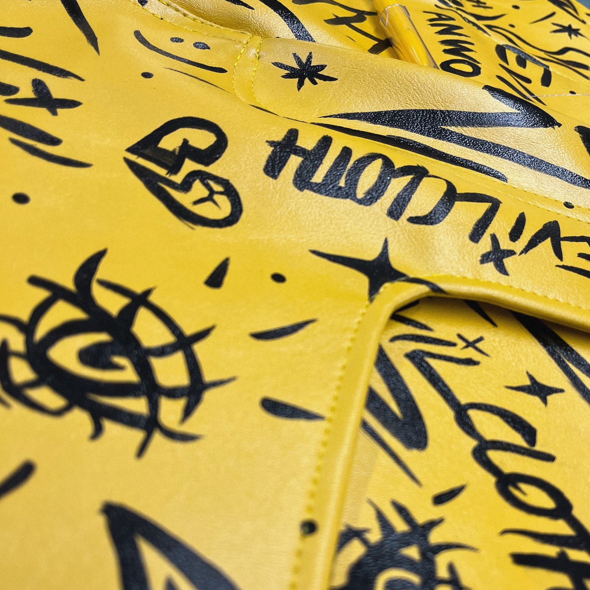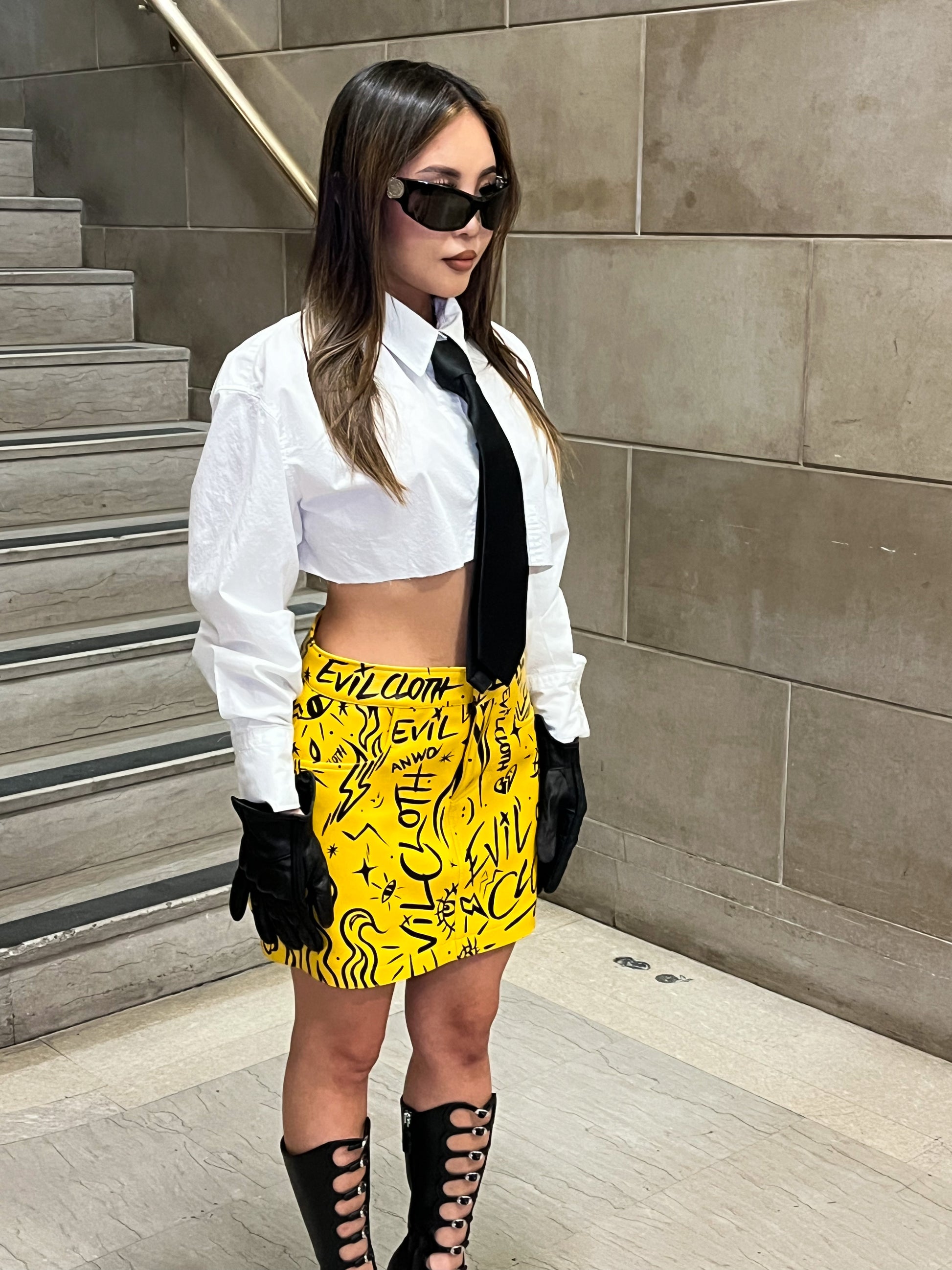 “SMSS" SKIRT, a true work hand made of art. Each skirt is hand-painted, making every piece completely unique. With its one-of-a-kind design, this skirt is sure to make a statement.
